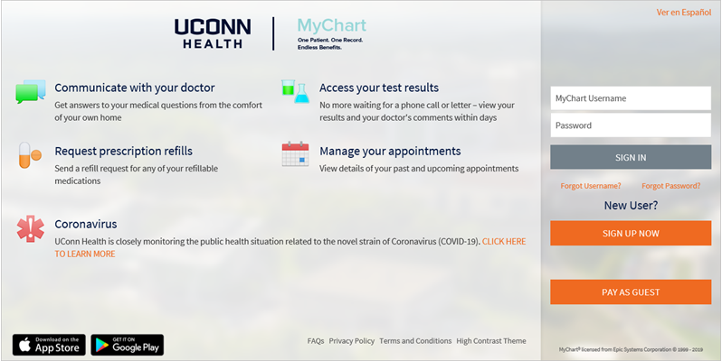 You can access MyChart via a desktop computer or laptop with video and audio capability using the UConn Health MyChart website or via a mobile device using the UConn Health MyChart app.