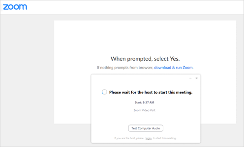 You may see a prompt to download and run Zoom on your desktop computer if this is your first video visit.